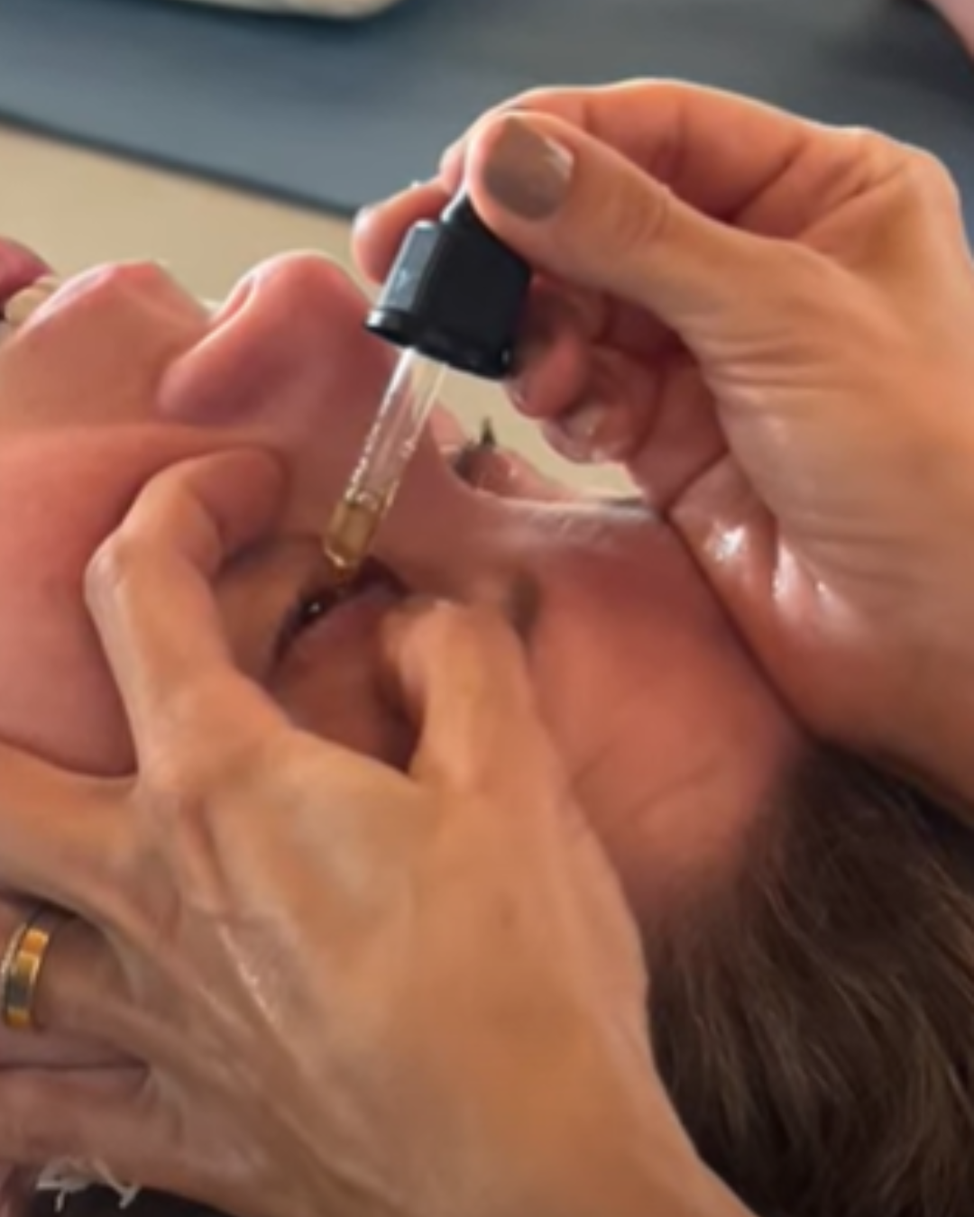 Netra Tarpana consiste na aplicação de ghee medicada com plantas medicinais suavemente morna nos olhos.
